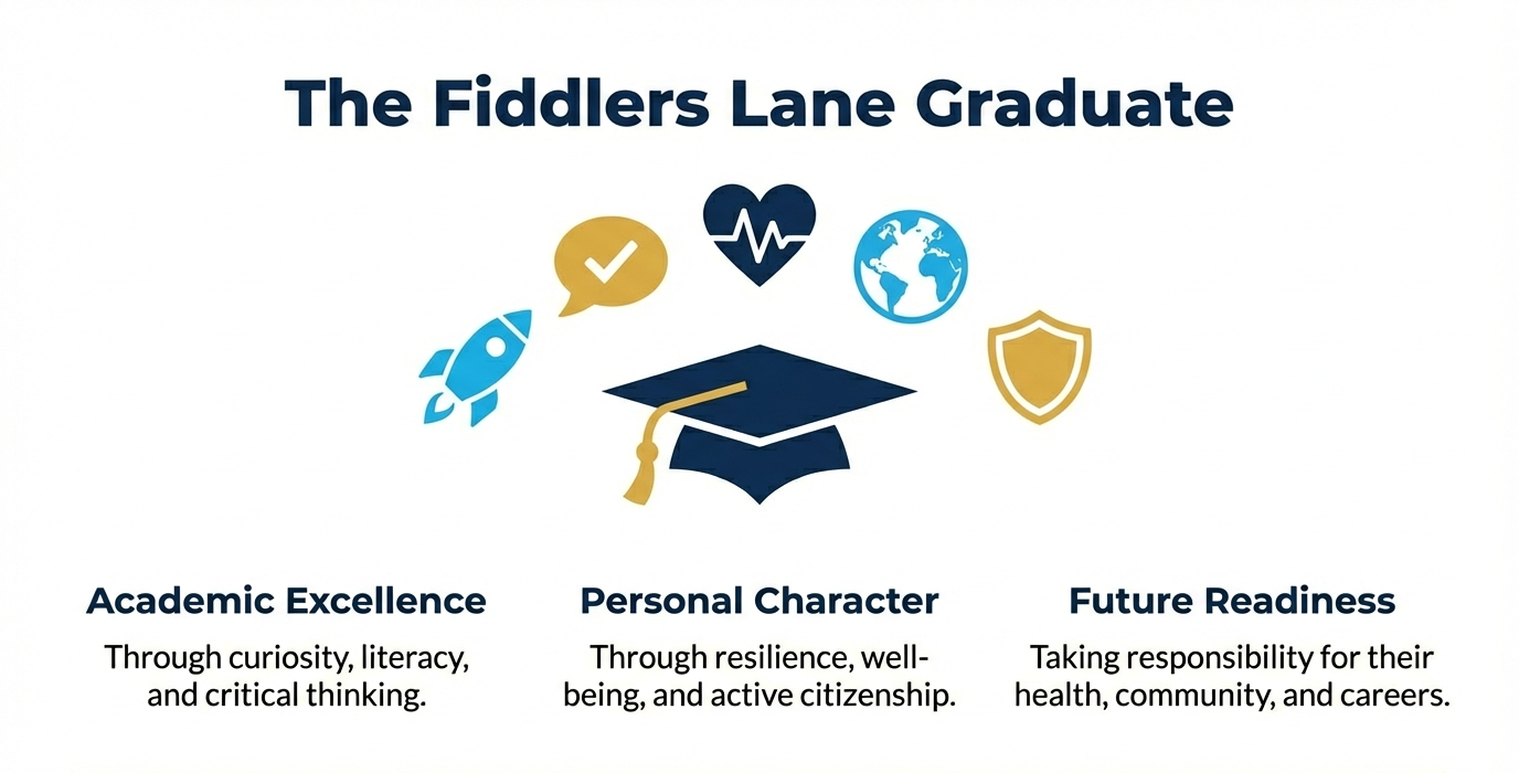 Fiddlers Lane Community Primary School is a collaborative school community where: every child belongs, achieves and succeeds; every child receives a first-class education and every child is prepared for a future of possibilities. Our curriculum is designed to achieve our school vision by being ambitious for all.