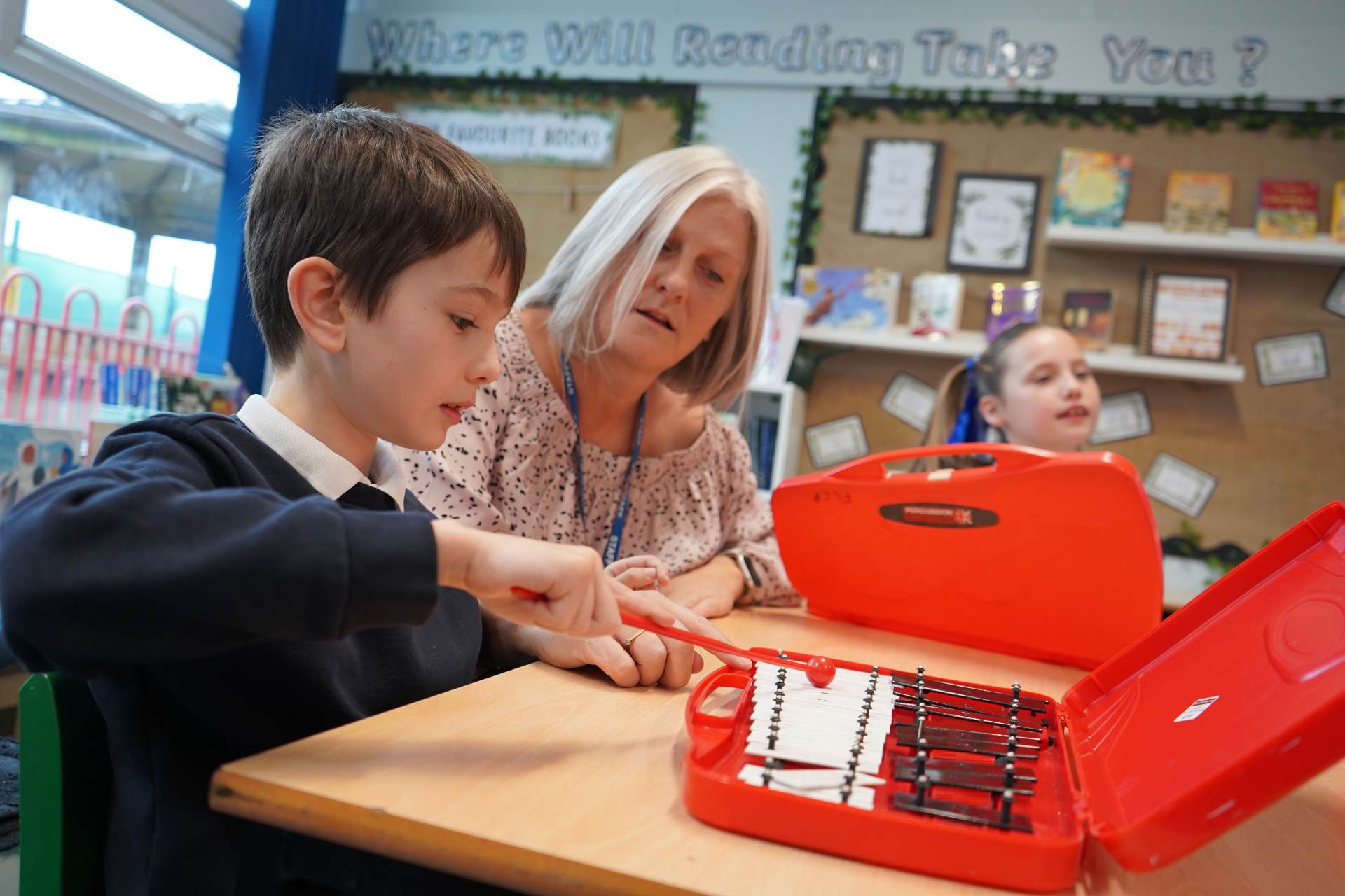 All pupils benefit from bi‑weekly music lessons taught by a specialist music teacher, ensuring high‑quality instruction and progression across the school. These sessions focus on developing key musical skills such as rhythm, pitch, singing and performance, while nurturing enthusiasm and musical confidence. Children are encouraged to work collaboratively, listen carefully and reflect on their own and others’ performances.